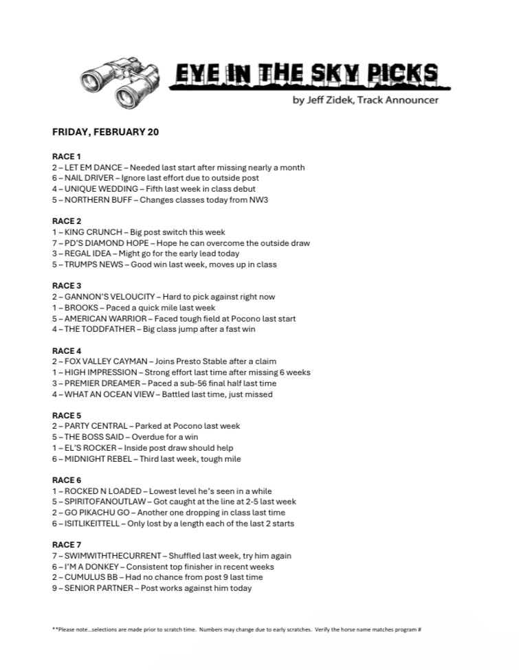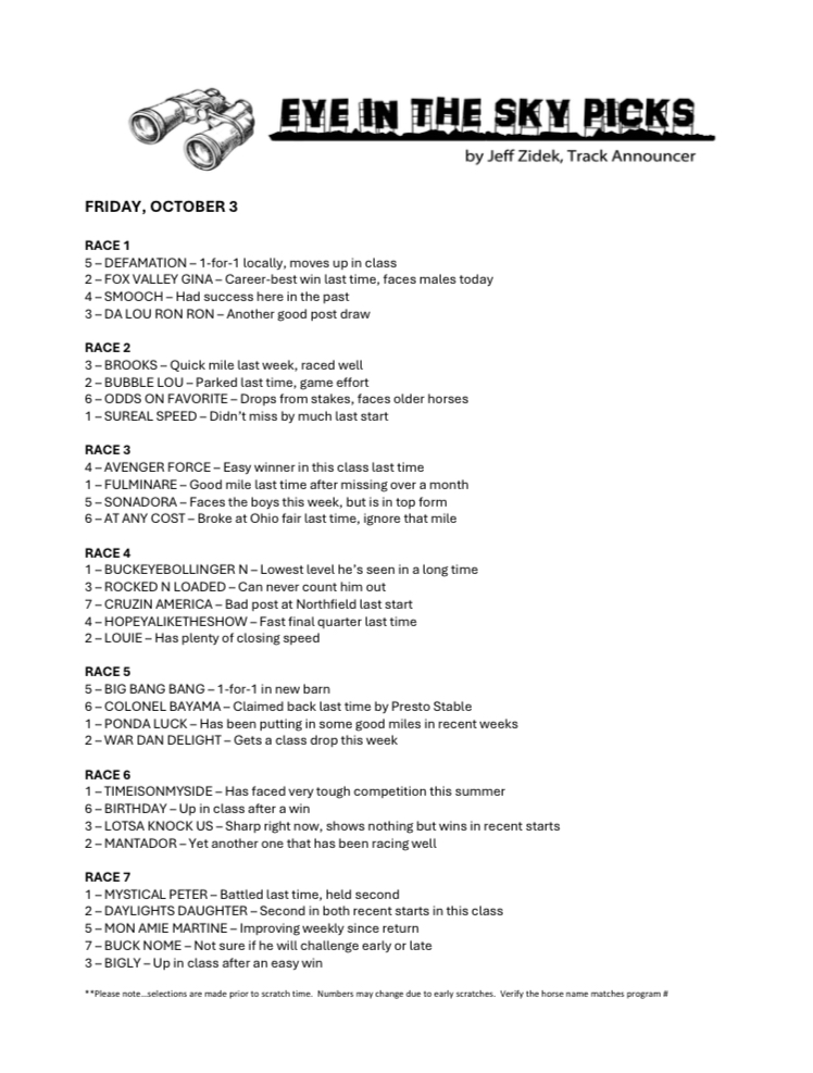 Kevin Plowcha and Jeff Zidek’s Daily Selections